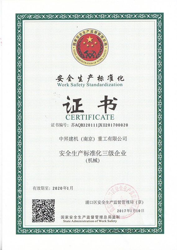 2017年1月11日,在經(jīng)過一系列安全生產(chǎn)標(biāo)準(zhǔn)化評定程序之后,我公司順利取得由浦口區(qū)安全監(jiān)管管理局頒發(fā)的安全生產(chǎn)標(biāo)準(zhǔn)化證書和牌匾。