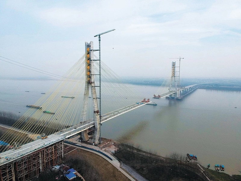 池州長(zhǎng)江公路大橋是安徽省“四縱四橫”高速公路網(wǎng)規(guī)劃中“縱三”濟(jì)南至祁門高速公路跨越長(zhǎng)江的關(guān)鍵性工程。長(zhǎng)江主通航孔橋即跨江主橋全長(zhǎng)1448m,采用登高塔混合梁雙塔斜拉橋方案。