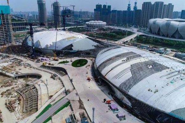 俯瞰杭州奧體中心主體育館、游泳館,呈“化蝶”姿態(tài)欲展翅飛翔,全球最大“玉琮”——綜合訓(xùn)練館也已雄姿初展,錢(qián)江南岸的新時(shí)代杭州城市新地標(biāo)群輪廓日益清晰。截至目前,主體育館和游泳館主體結(jié)構(gòu)已通過(guò)驗(yàn)收,金屬屋蓋實(shí)現(xiàn)整體閉水,機(jī)電設(shè)備安裝完成90%,室內(nèi)精裝修完成65%,室外市政配套完成55%。綜合訓(xùn)練館主體結(jié)構(gòu)也已通過(guò)驗(yàn)收,屋面、幕墻工程完成77%,機(jī)電設(shè)備安裝完成85%,室內(nèi)精裝修完成50%,室外市政配套完成90%。