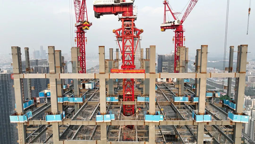 項目攻堅克難、晝夜運作,主體高度從150米到200米僅耗時126天;面對鋼管巨柱工序復(fù)雜、超高泵送、塔吊附著難度高等內(nèi)部重難點。由我公司生產(chǎn)ZSL2700一臺、ZSL850兩臺動臂式塔機為項目的順利進行起到了積極作用。