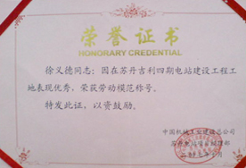 祝賀我司工程師徐義德榮獲蘇丹吉利電廠四期工程2007年度勞動(dòng)模范稱號(hào) 2008-05-07 |