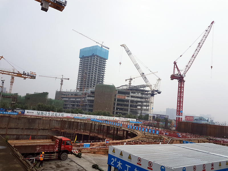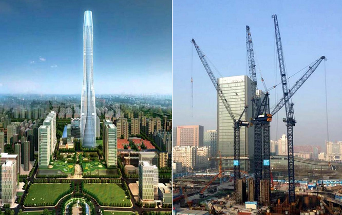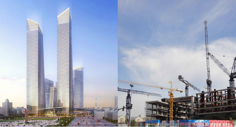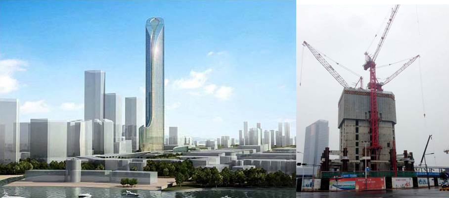 建筑主體高度592.5米,采用中昇建機(jī)ZSL2700(100T)兩臺(tái)。