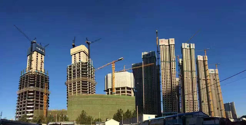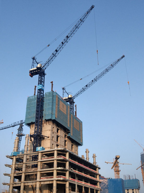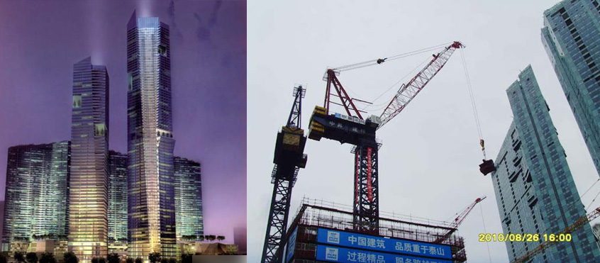 施工高度一棟200米、一棟180米,采用中昇建機ZSL850(50t)一臺、ZSL750(50t)一臺。