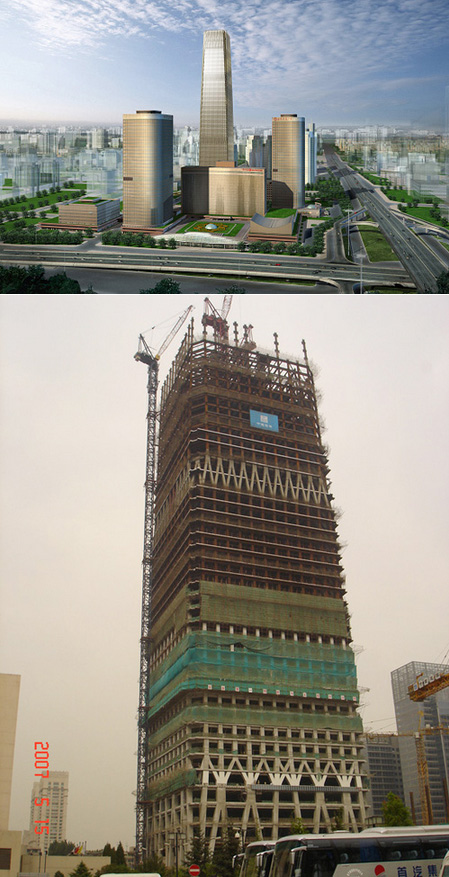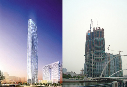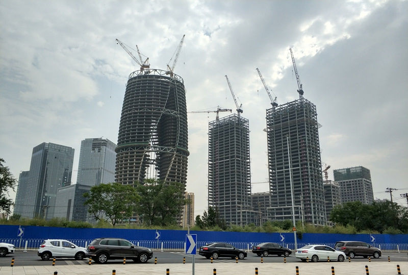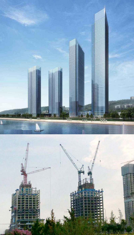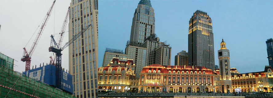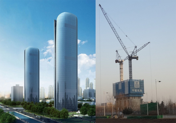 建筑高度380米,采用中昇建機ZSL3200(100T)及ZSL750(50T)各一臺。
