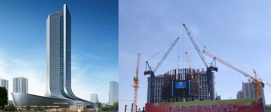 建筑施工高度330米,采用中昇建機ZSL850(50T)一臺,ZSL750(50T)一臺。