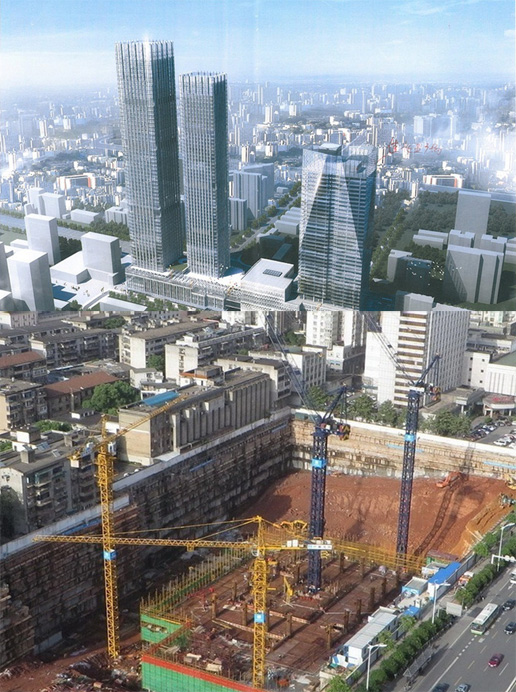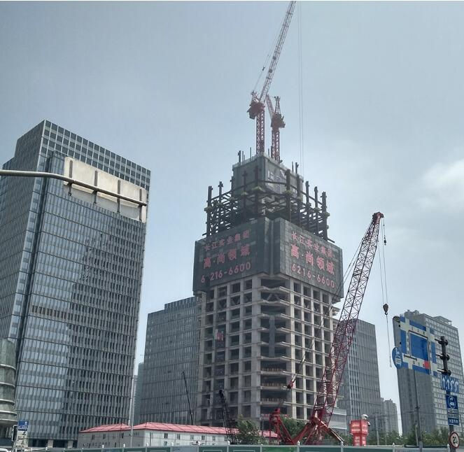 施工高度341米,采用中昇建機(jī)一臺(tái)ZSL2700(最大吊重100t)