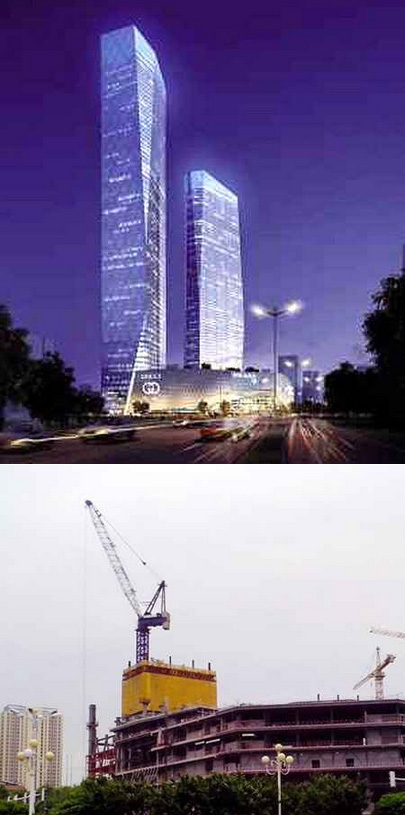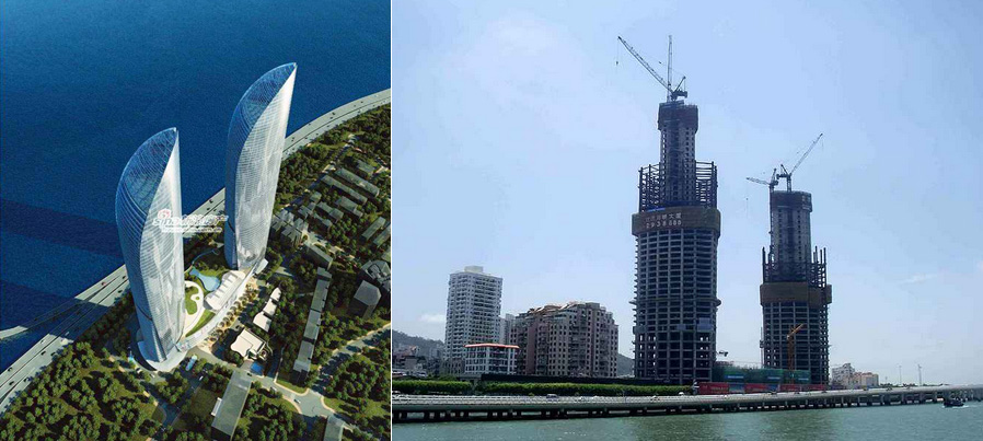 由中建八局承建,施工高度168米,采用中昇建機(jī)塔機(jī)ZSL500一臺(tái)(32T)一臺(tái),ZSL260(18T)一臺(tái)。