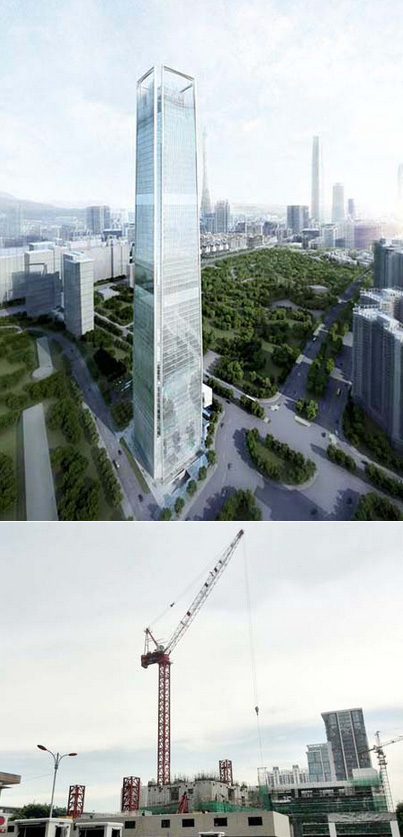 施工高度317.6米,采用中昇建機(jī)兩臺(tái)ZSL750(最大吊重50t)