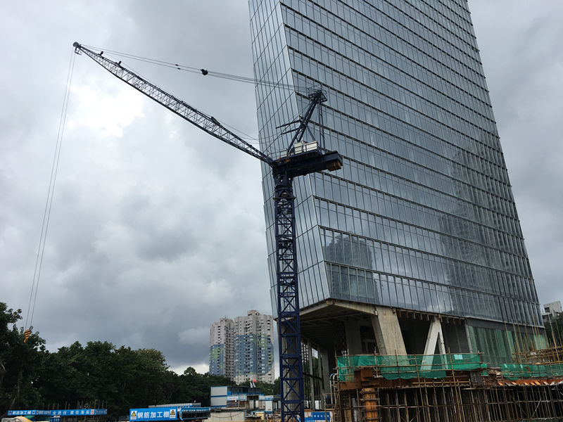 建筑高度330m,采用中昇建機(jī)ZSL1000兩臺(tái),最大吊重64t