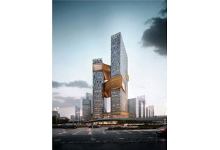 施工高度327米,采用中昇建機兩臺ZSL1250(最大吊重64t)