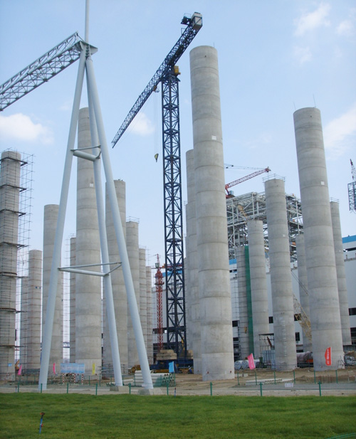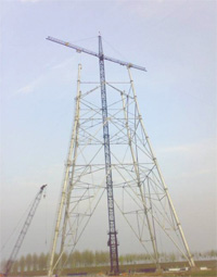 采用中昇建機ZSLB-I雙平臂自旋自升座地抱桿,高度210m最大吊重(兩邊)22m處吊10t