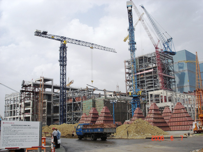 采用中昇建機ZSC2000B(ZSC70260)水平塔式起重機,高度115m最大吊重20.2m處吊100t