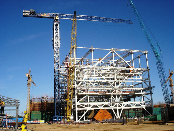 采用中昇建機ZSC2800(ZSC70360)水平塔式起機,高度120m最大吊重19.5m處吊140t