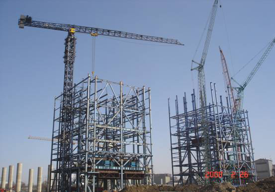 采用中昇建機ZSC450(ZSC5080)水平塔式起重機(爐頂吊),高度36m最大吊重23m處吊20t